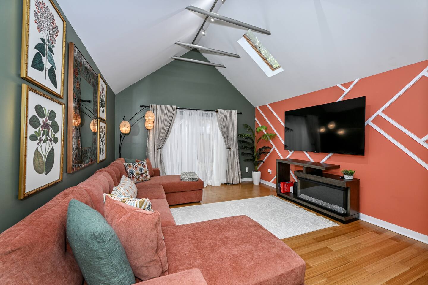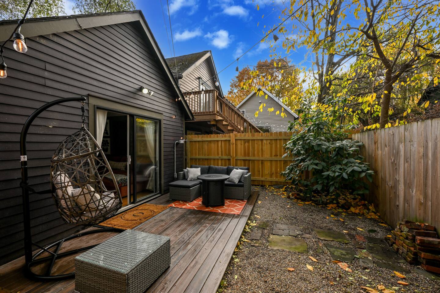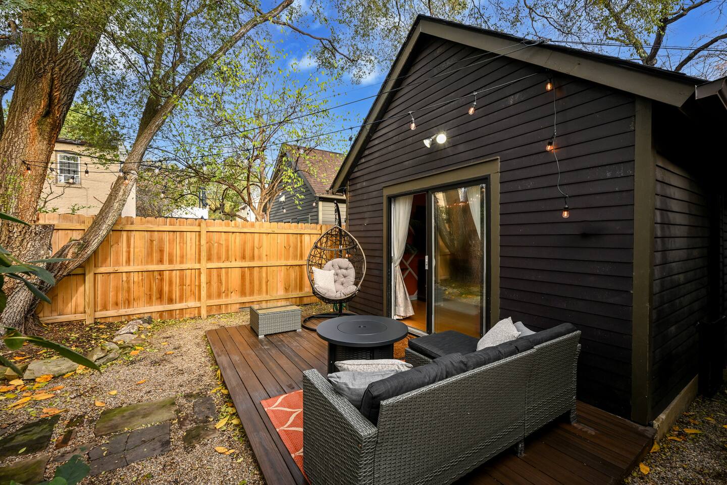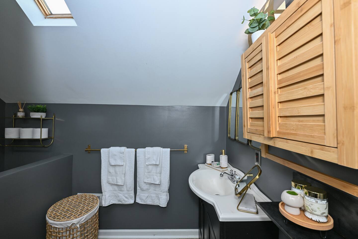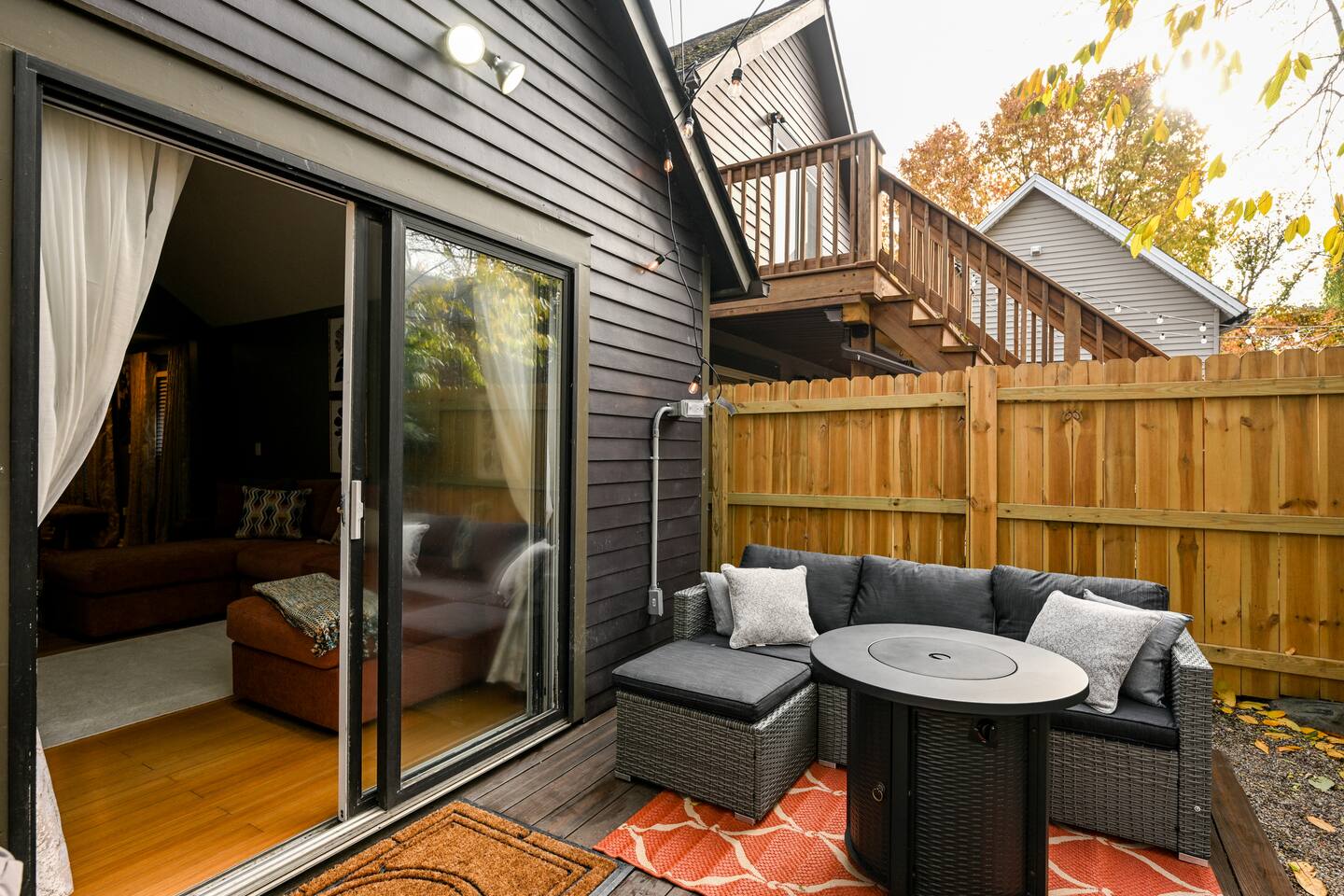 This beautiful 2 bed room 1.5 bath home is fully equipped with everything you’ll need for a most enjoyable stay. Cozy up downstairs on the large sofa with ample sitting, pillows and blankets. For those chilly, Cleveland nights, a beautiful multi color fireplace will be sure to give some additional warmth. Should you choose to cook, a fully stocked kitchen with everything you may need to prep that gourmet meal has been setup for your convenience. If cooking isn’t on the agenda, the table is set and there are lots of great dinning/ take out options near by. A half bathroom, good sized bedroom with a large, comfortable king sized bed and a work station complete the downstairs living area. A short walk up the stairs where a piece of the old blends with the new leads you to the Master area. A beautiful foyer leads to another large bedroom with a super comfortable king sized bed. Here you’ll find a full sized bathroom to finish up this space. Enjoy the sunrise through the windows and skylight but should you choose, each room has sun blocking drapes. Outdoors, you’ll find a beautiful and private sitting area. Lounge on the couch or just chill/read a book in the hanging egg chair. You’ve got choices. An outdoor charcoal grill has been provided as well. This neighborhood boasts great walking and biking scores. Parks, gyms and several local highlights/restaurants are all within walking distance to this gem. If a great stay in a great location is what you are in search of, your search is over! See amenities for detailed offerings.