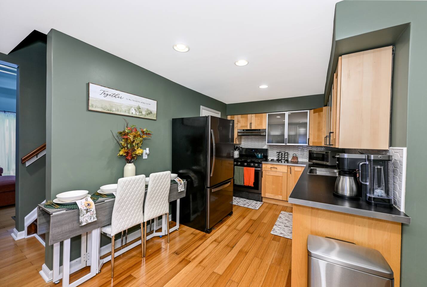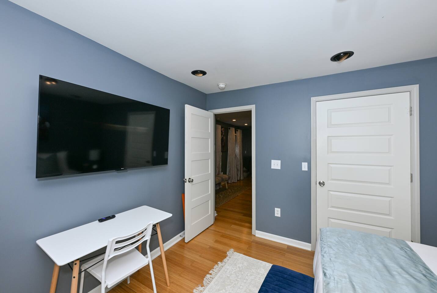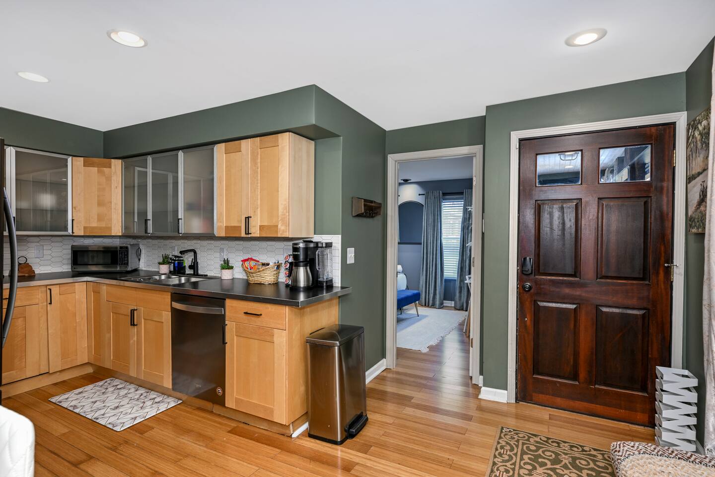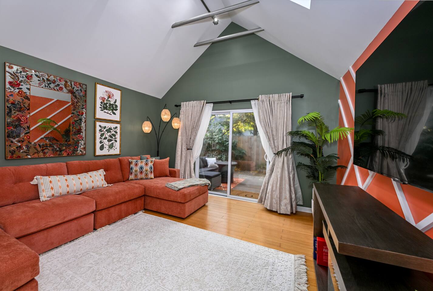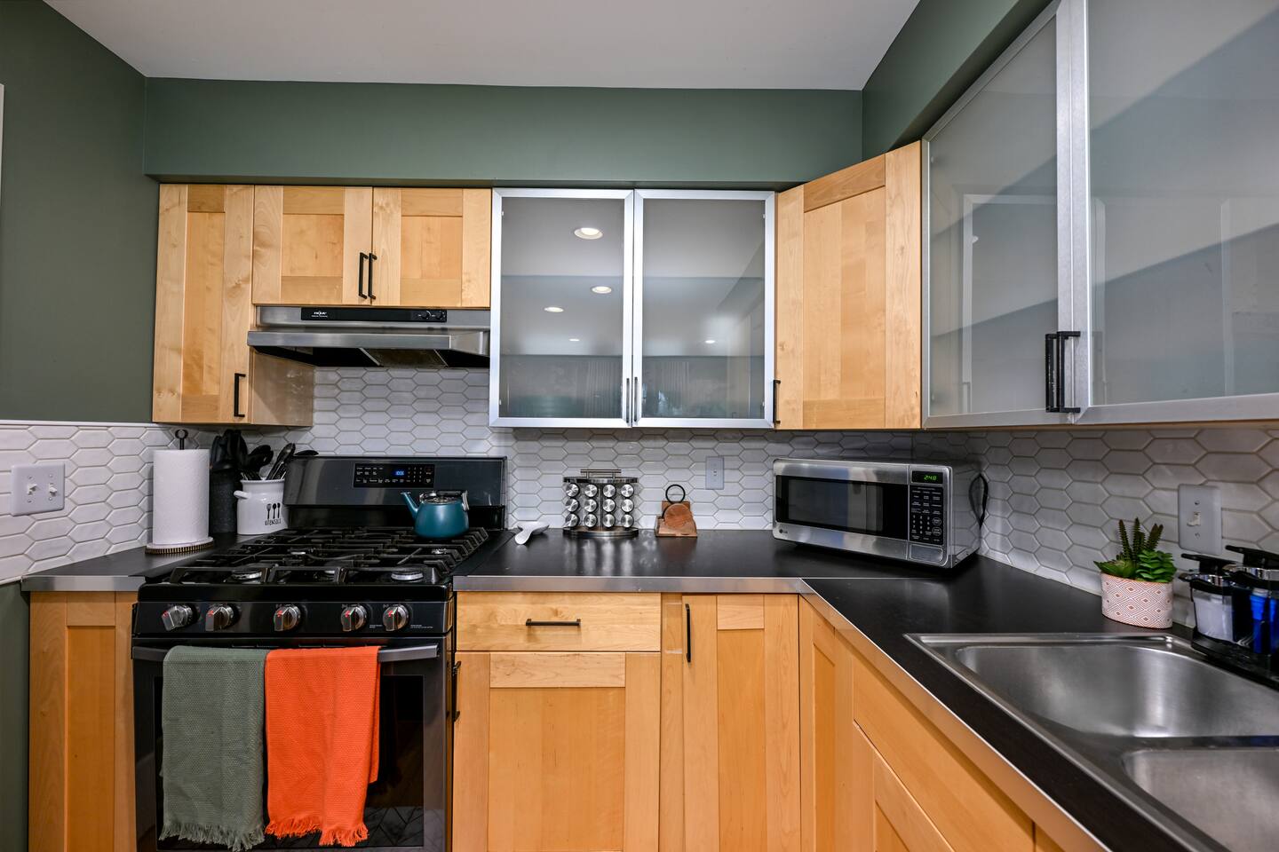 This beautiful 2 bed room 1.5 bath home is fully equipped with everything you’ll need for a most enjoyable stay. Cozy up downstairs on the large sofa with ample sitting, pillows and blankets. For those chilly, Cleveland nights, a beautiful multi color fireplace will be sure to give some additional warmth. Should you choose to cook, a fully stocked kitchen with everything you may need to prep that gourmet meal has been setup for your convenience. If cooking isn’t on the agenda, the table is set and there are lots of great dinning/ take out options near by. A half bathroom, good sized bedroom with a large, comfortable king sized bed and a work station complete the downstairs living area. A short walk up the stairs where a piece of the old blends with the new leads you to the Master area. A beautiful foyer leads to another large bedroom with a super comfortable king sized bed. Here you’ll find a full sized bathroom to finish up this space. Enjoy the sunrise through the windows and skylight but should you choose, each room has sun blocking drapes. Outdoors, you’ll find a beautiful and private sitting area. Lounge on the couch or just chill/read a book in the hanging egg chair. You’ve got choices. An outdoor charcoal grill has been provided as well. This neighborhood boasts great walking and biking scores. Parks, gyms and several local highlights/restaurants are all within walking distance to this gem. If a great stay in a great location is what you are in search of, your search is over! See amenities for detailed offerings.